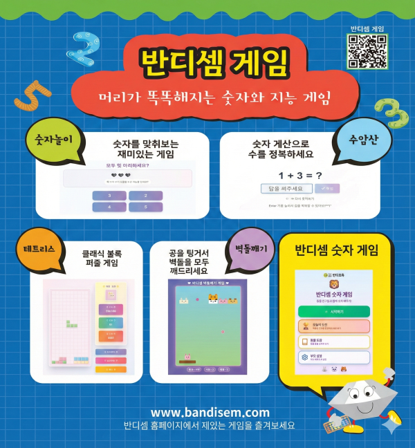 수에 대한 자신감을 키울수 있는 '반디셈 숫자 게임'을 추가했습니다.